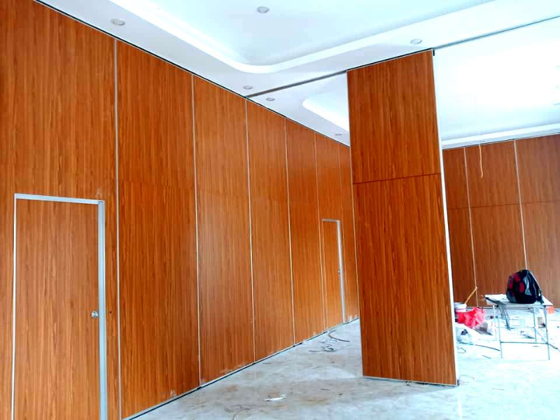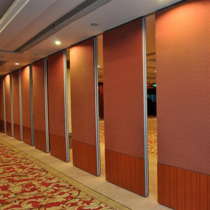 Tấm vách di chuyển nhờ các con bi lăn phía trên liên kết với ray treo. Các gioăng cao su phía trên dưới có thể dễ dàng thu mở để có thể cách âm và di chuyển khi ra vào khoang cất vách.