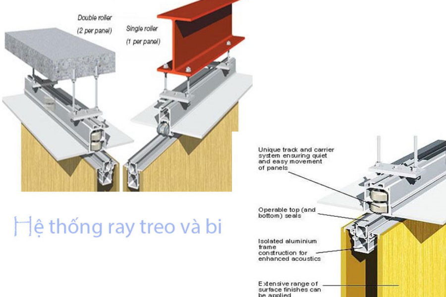 - Liên kết giữa tấm vách và ray treo. Bi này đóng vai trò rất quan trọng trong việc:
