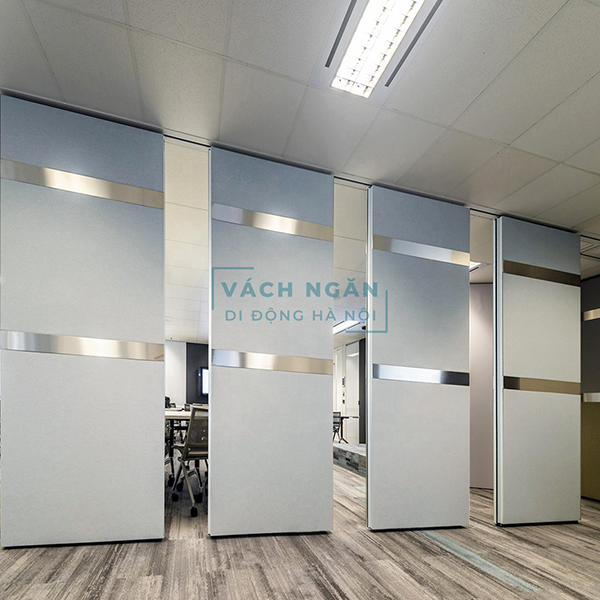- Vách ngăn di động gồm hệ thống ray treo, bi và vách ngăn. - Quá trình di chuyển của vách ngăn di động là nhờ vào hệ thống ray và trục bi - Các tấm vách được thiết kế với kích thước tiêu chuẩn. |