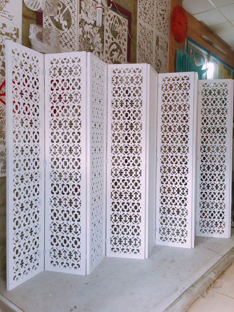 Vách ngăn di động nhựa CNC. Đây là mẫu vách ngăn lõi gỗ công nghiệp, trên bề mặt phủ nhựa, mica, MDF,...